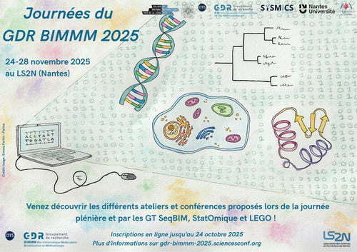 Nous avons le plaisir de vous convier aux prochaines journées du GDR, sur 5 jours, du lundi 24 au vendredi 28 novembre 2025. La dernière édition, en 2023 à Lille, avait pour focus l’apprentissage profond pour la bioinformatique.