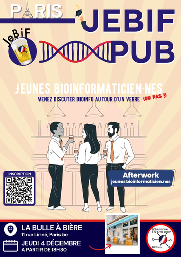 Le principe du JeBiF Pub est simple : offrir un moment convivial pour la communauté bioinformatique afin de discuter, échanger des idées, développer des contacts professionnels, ou tout simplement rencontrer d’autres bioinformaticiens de sa ville !